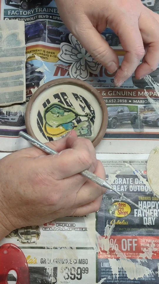 Double Island Studio is owned and operated by artists Liz Zlot Summerfield and Scott Summerfield. They reside in Bakersville, North Carolina with their talented daughter, Roby Summerfield. Each share a passion for their craft which consists of ceramics, glass, and printmaking.